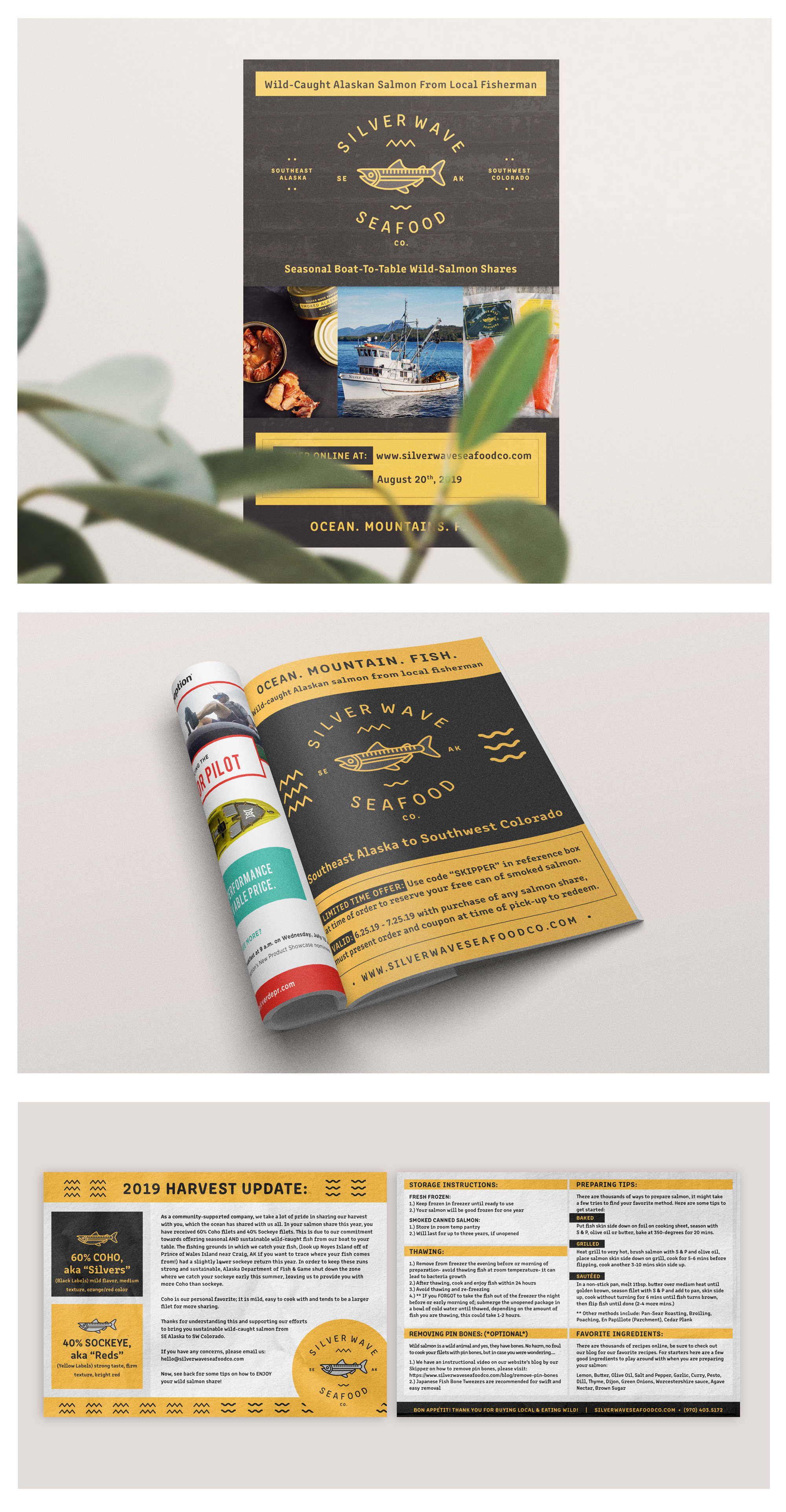 Silver Wave Seafood Company is based out of Atlanta, Ga. It is a community-supported company that brings sustainably harvested, wild caught salmon from Southeast AK to Southwest Colorado. Silver Wave shares with the community how their fish were caught, and help teach about the seasonality, sustainability, and nutritional values of the salmon they bring home. I have helped them develop their marketing collateral, packaging, and apparel.